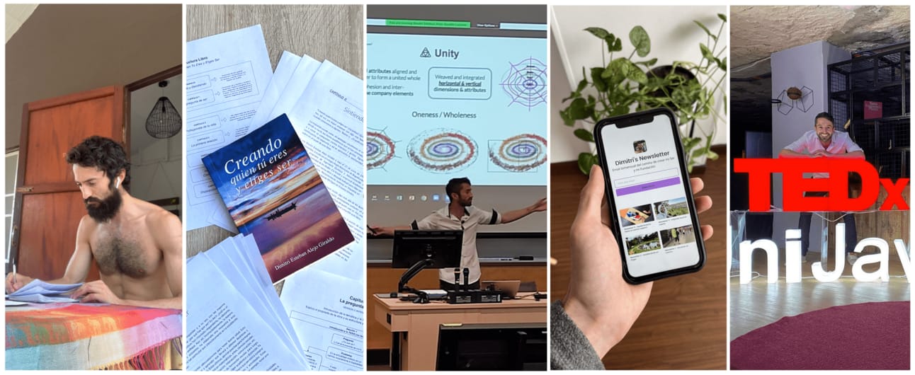 🔊 Charlas realizadas: Se ha dado varias charlas que van desde empresas conscientes hasta mi viaje personal. Se han presentado en formatos como podcasts, eventos en persona, YouTube y una aparición en TEDx.